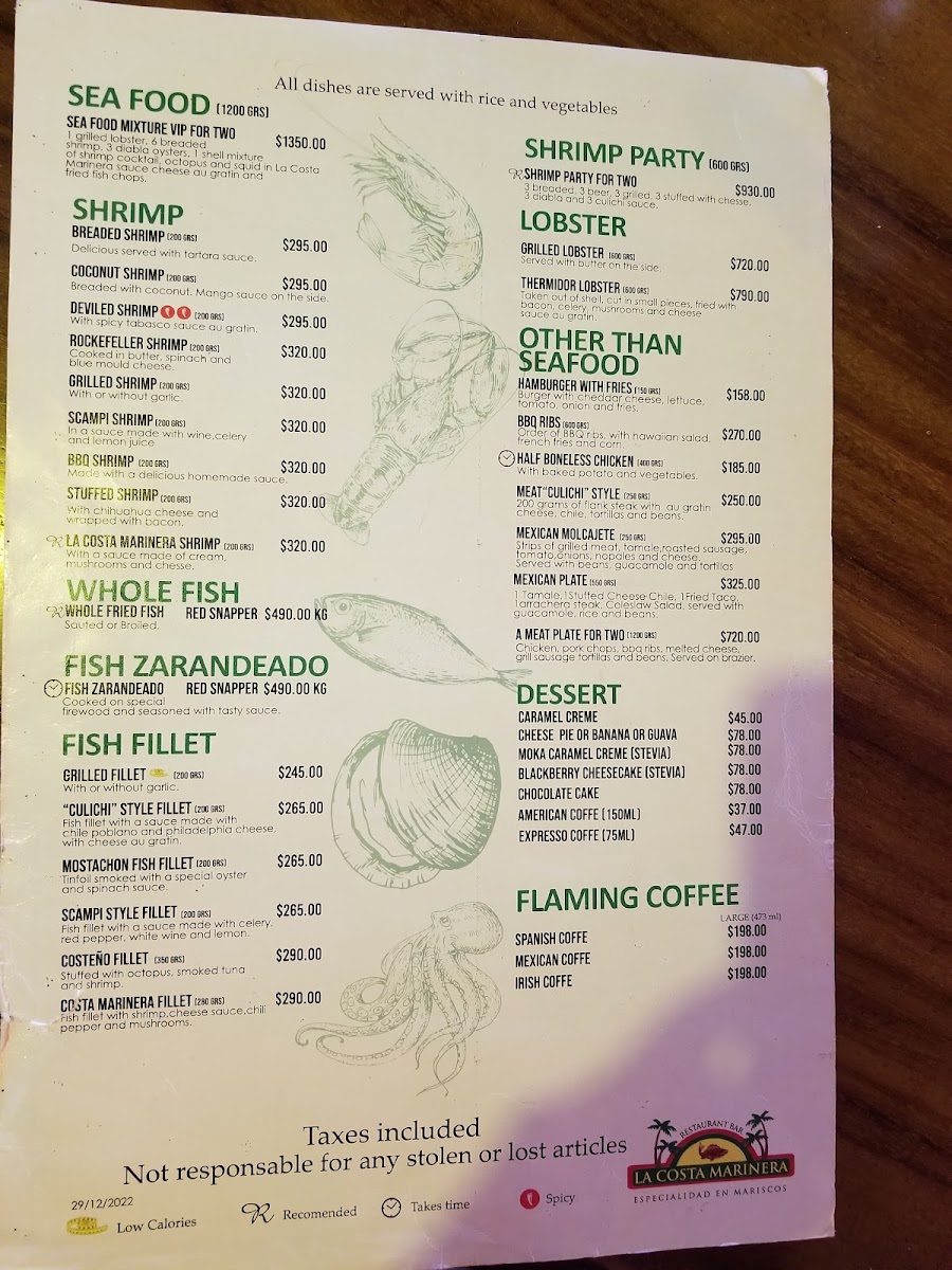 Introducing the menu at La Costa Marinera, nestled on the picturesque beaches of Mazatlan, where culinary delight meets oceanfront ambiance. This vibrant Mariscos restaurant dazzles with an impressive variety of seafood dishes that cater to every palate. With over 100 offerings, diners can indulge in fresh catches prepared to perfection. Highlights from the menu include their renowned seafood platter for two, featuring shrimp in three exquisite styles, and the absolutely delightful red snapper, fried to golden perfection.